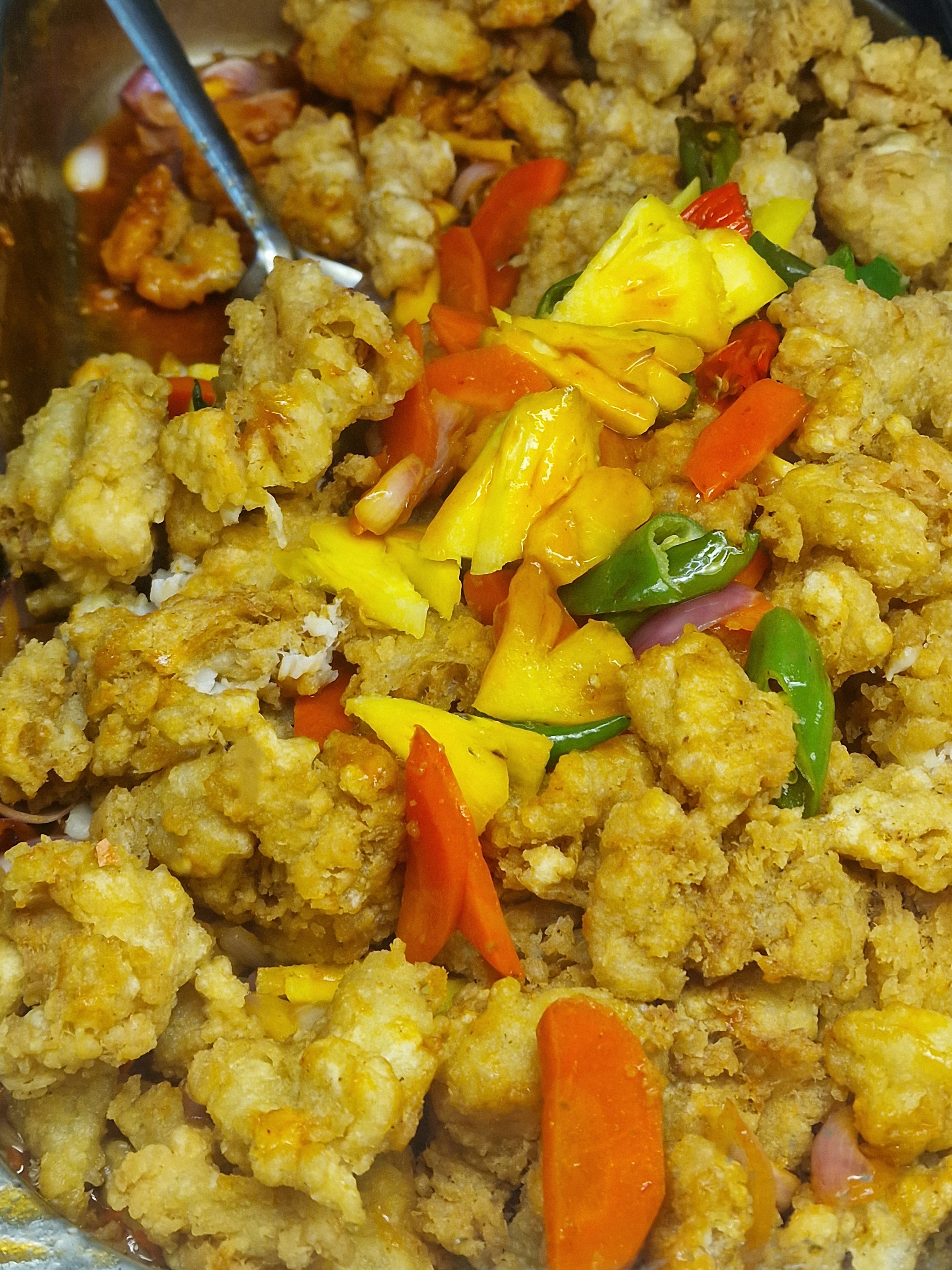 c un trop de sale pour poisson aigre doux donc pourpour la prochaine visite merci tres peu de sel